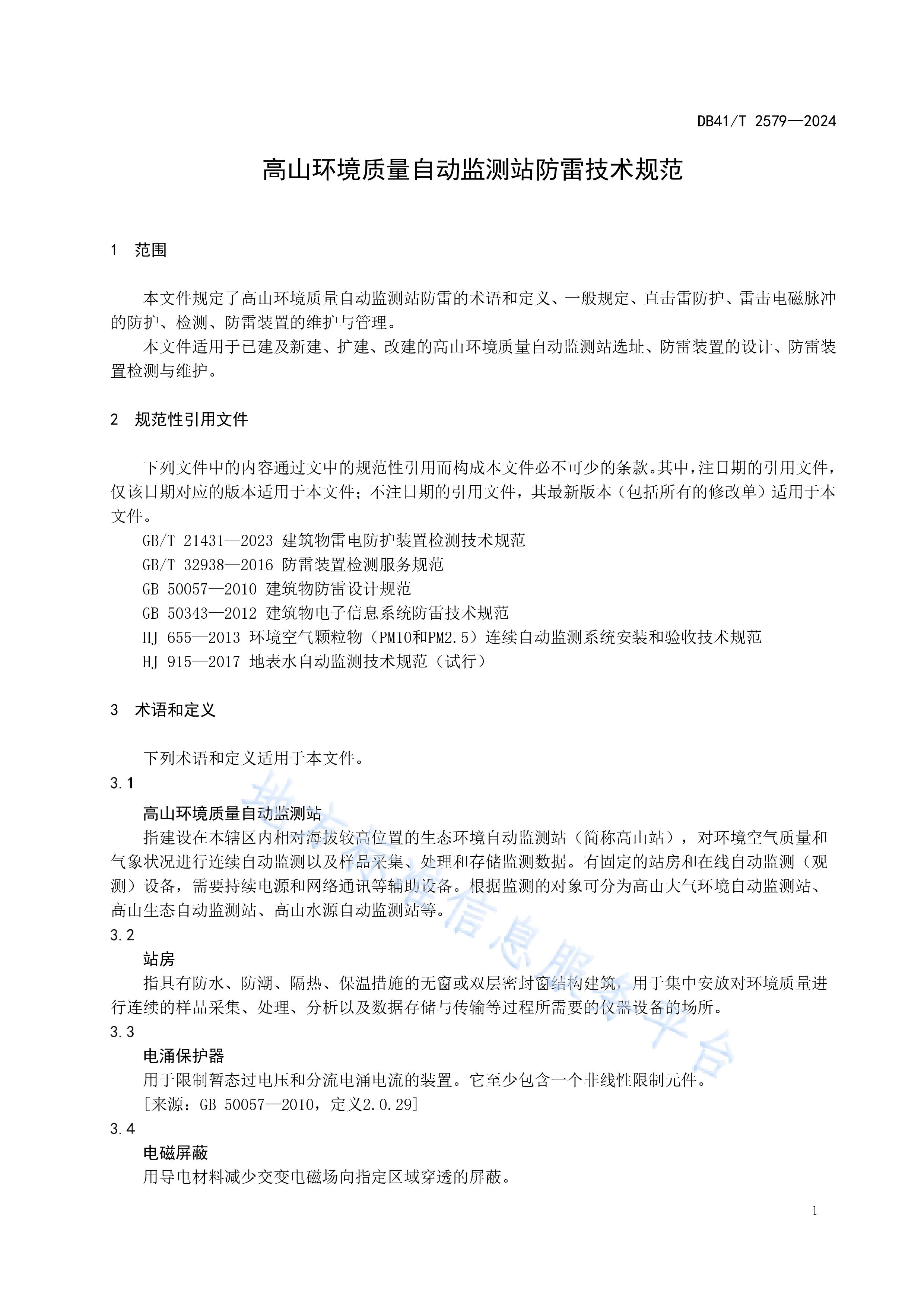 地方標(biāo)準(zhǔn)《高山環(huán)境質(zhì)量自動(dòng)監(jiān)測(cè)站防雷技術(shù)規(guī)范》,主管部門(mén)為河南省市場(chǎng)監(jiān)督管理局。